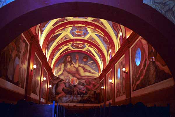 テスココの近くにあり、農業大学の一部になっています。教会だった場所に全面に描かれたオロスコの壁画で有名です。