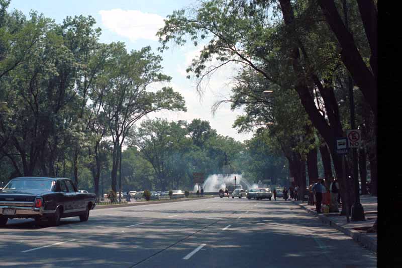 ↑朝8時、インスルヘンテスとリオ・チュルブスコの交差点。当時は信号が無く、ロータリーで充分に裁けてました。レフォルマのアンヘル像の交差点もロータリーでした。今でも面影が残ってます。セントロの一部を除いてどこでも路上駐車に不便しませんでした。