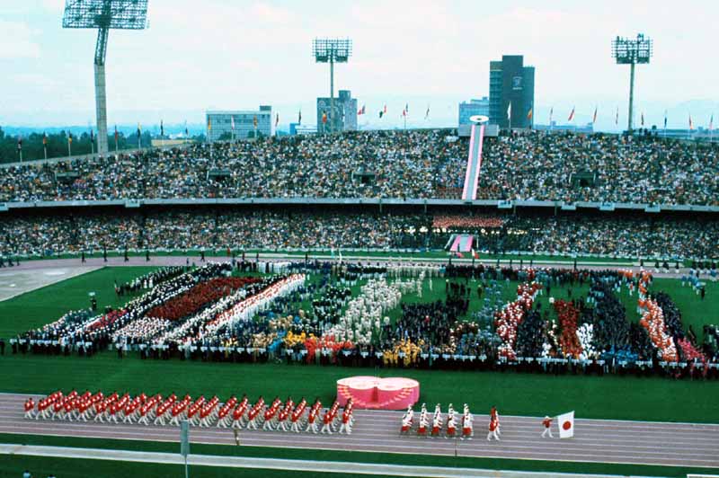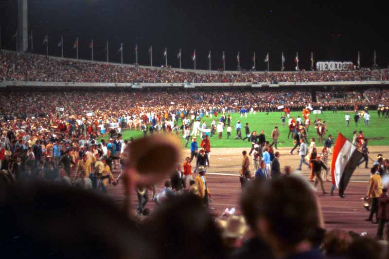 閉会式。直後に観客がフィールドに雪崩れ込み、一緒に行進するのはここから始まった様です。