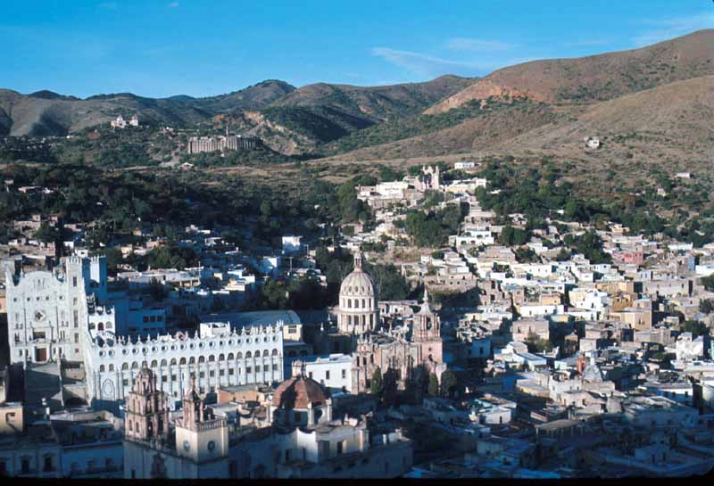 グアナフアト。ピピラの丘からの眺め。色彩に乏しく一幅の墨絵の様。世界遺産になってからコロニアル風を強調するかのように極彩色で塗りたくられて仕舞いました。
