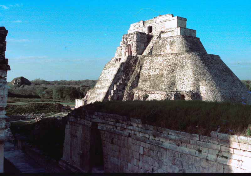 遺跡ウシュマル。古いままの方が趣が有って良いと思うのですが、安全の為にか10年後には物の見事に修復されていました。