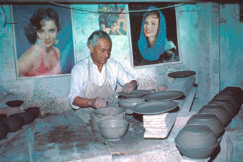 当時現役のエリザベステーラーとアンブライスに囲まれ仕事に励むタラベラの陶工