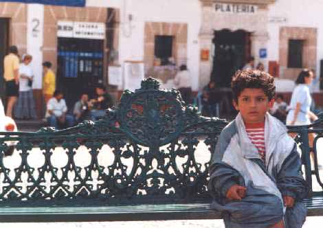 銀の町・タスコの広場で、男の子がちょこんとベンチに腰掛けていました。