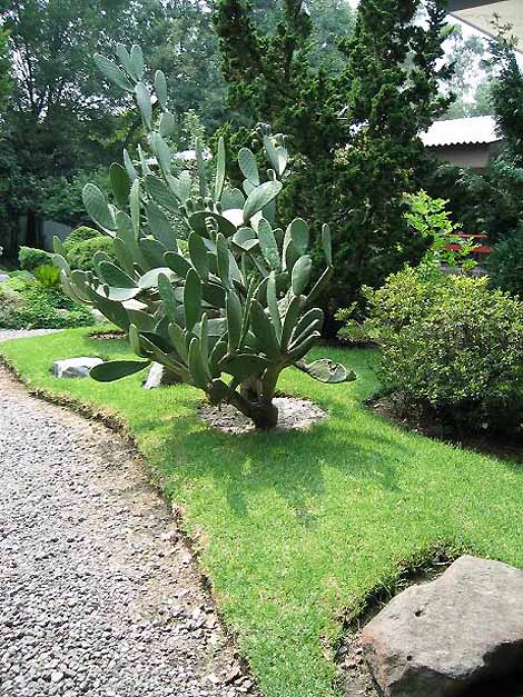 メキシコシティの閑静な住宅街にある日墨(メキシコ)会館の“日本庭園”には、さりげなくサボテンの木が植えられています。日墨友好ですなぁ。。