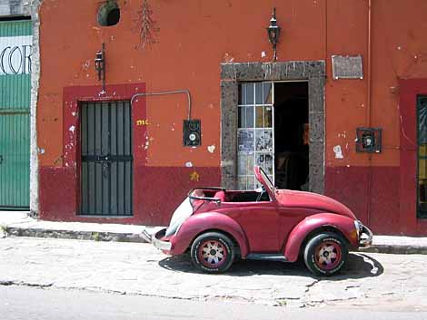 とある田舎で見かけた、フォルクスワーゲン製(旧型ビートル)の二人乗り改造車。唯一メキシコで生産されていたこともあり、タクシー運転手をはじめ、長年メキシコで 愛されてきた"国民車"ですが、他社の小型モデル台頭により徐々に売上が落ち始め、2003年7月に生産中止になってしまいました。通りで見かける台数も年々減っていて、 寂しい限りです。